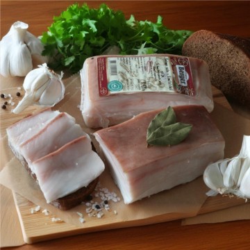 Lardo di Maiale fresco . Lardo di maiale è ricco di vitamina D che è importante per la salute delle ossa e del sistema immunitario e anche la vitamina E . Grazie alle sue benefici lardo previene il rischio di sviluppare le malattie cardiovascolari.